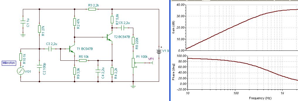 (Egyébként ez egy számomra szokatlan elrendezésű erősítő, ilyen, mikrofon- illetve lemezjátszó vagy magnóhangszedő előerősítőket én inkább olyanokat láttam, ahol a jobb oldali tranzisztor PNP típus.)