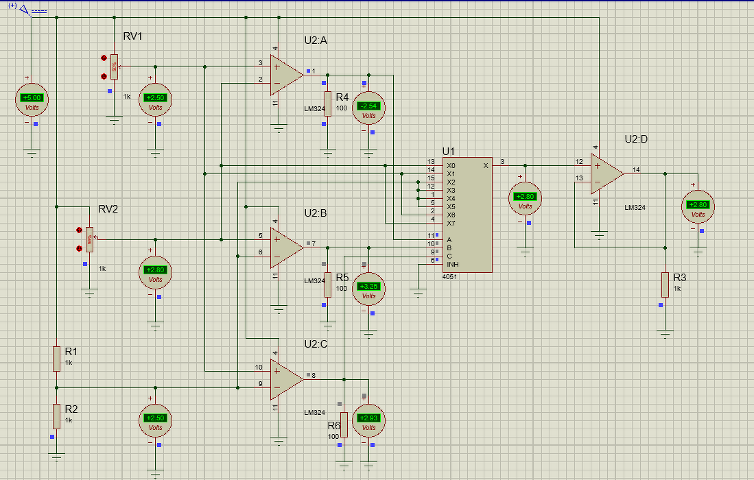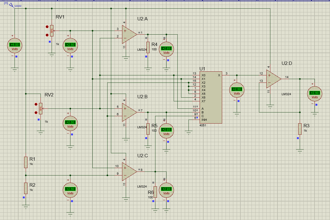 "Elkészítettem" Skakuk kapcsolását Proteus-al, a tapasztalatok roppant érdekesek. Ha az LM324 kimeneteit nem "vágjuk agyon" R4, R5, R6 100 Ohmmal, akkor a 324 kimenetein 190 V lesz (csak tudnám, hogy honnan veszi, a voltmérőn látszik, hogy 5 V a táp.) Innentől kezdve az egész (áramkőr)szimuláció végeredménye megkérdőjelezhető. (Nem az áramkőré, a szimulációé!) Holnap elkészítem igazi alkatrészekből, és akkor sínen (siklópályán?) vagyunk... Köszönettel derűs estét; Tambi.