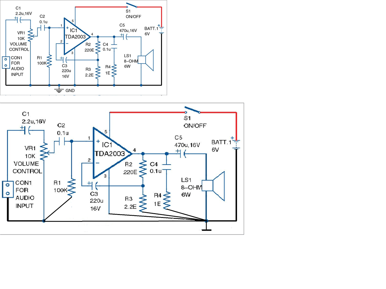 Trükközni is lehet. Magát a TDA2003 erősítőt kell úgy kialakítani, hogy ne legyen érzékeny a földhurokra.