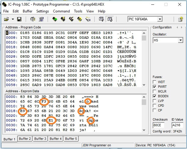 Akkor azért van ez a kuszaság az ICPROG-ban. Így már értem, és ezért jelent meg más, de csak a speciális kódtábla részén (127 felett).