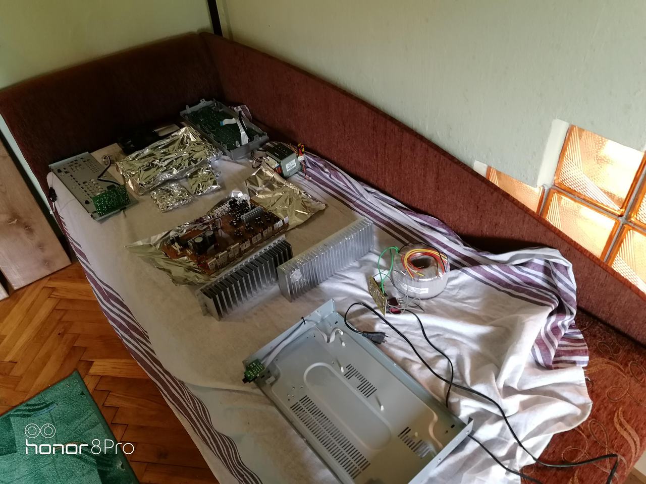 Itt még nem írtam, érdekesség fórumtársaimnak Élesztéskor volt egy furcsa jelenség, 2-12 között vátakozva ki-be kapcsolgatott a készülékben a fő táp relé mire bekapcsolt, és 35-ös hangerőnél, mikor valószínűleg átkapcsol a kisebb tápfeszről a nagyobbra, újraindult, ezt leszámítva stabil volt. Sok szitkolódás és újragondolás után arra a következtetésre jutottam hogy a nagyteljesítményű táp nem áll be időre, mikor már a védelem igen és ezt érzékelve mindig újra próbálta indítan. A 856W-os toroidot egy lágyindító kapcsolta az áramkörbe, ebben 4db soros 10ohm 5W ellenállás volt, ezt megfelezve jó lett az időzítés és megszünt a fentiekben említett mindkét hibajelenség.