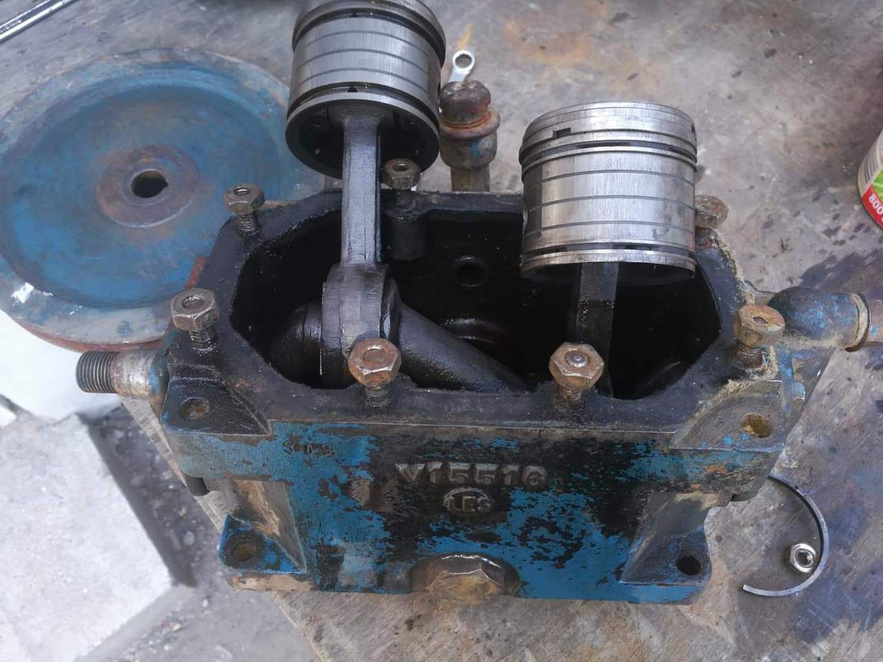 Az egyik dugattyún mindkét olajlehúzó gyűrű törött volt, de ahogy látom, a hengerfalat nem bántotta. A furat 60, a löket 40mm. A gyűrűhézag kicsit nagy, 1-1,2mm. Szerintem az egészet újra kéne gyűrűzni. Csak ugye addig nehéz, míg nem tudok konkrét típust. Egy előnye már mindenképp van a ZIL kompresszorhoz képest, ez golyós csapágyas.