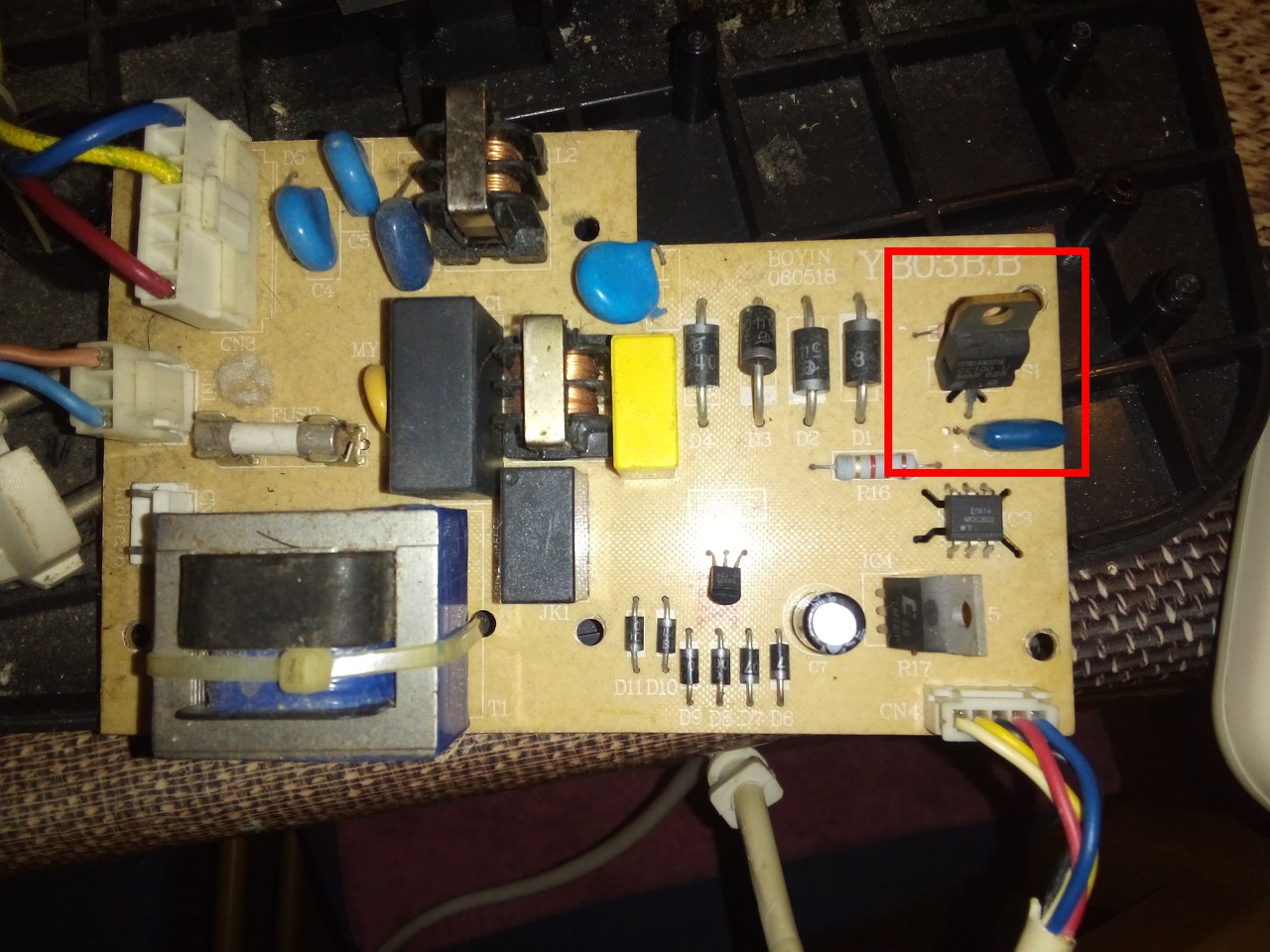 Én a triak és környezetének vizsgálatával kezdeném az ellenőrzést. Lehet zárlatos. A kék színű kondenzátort is.