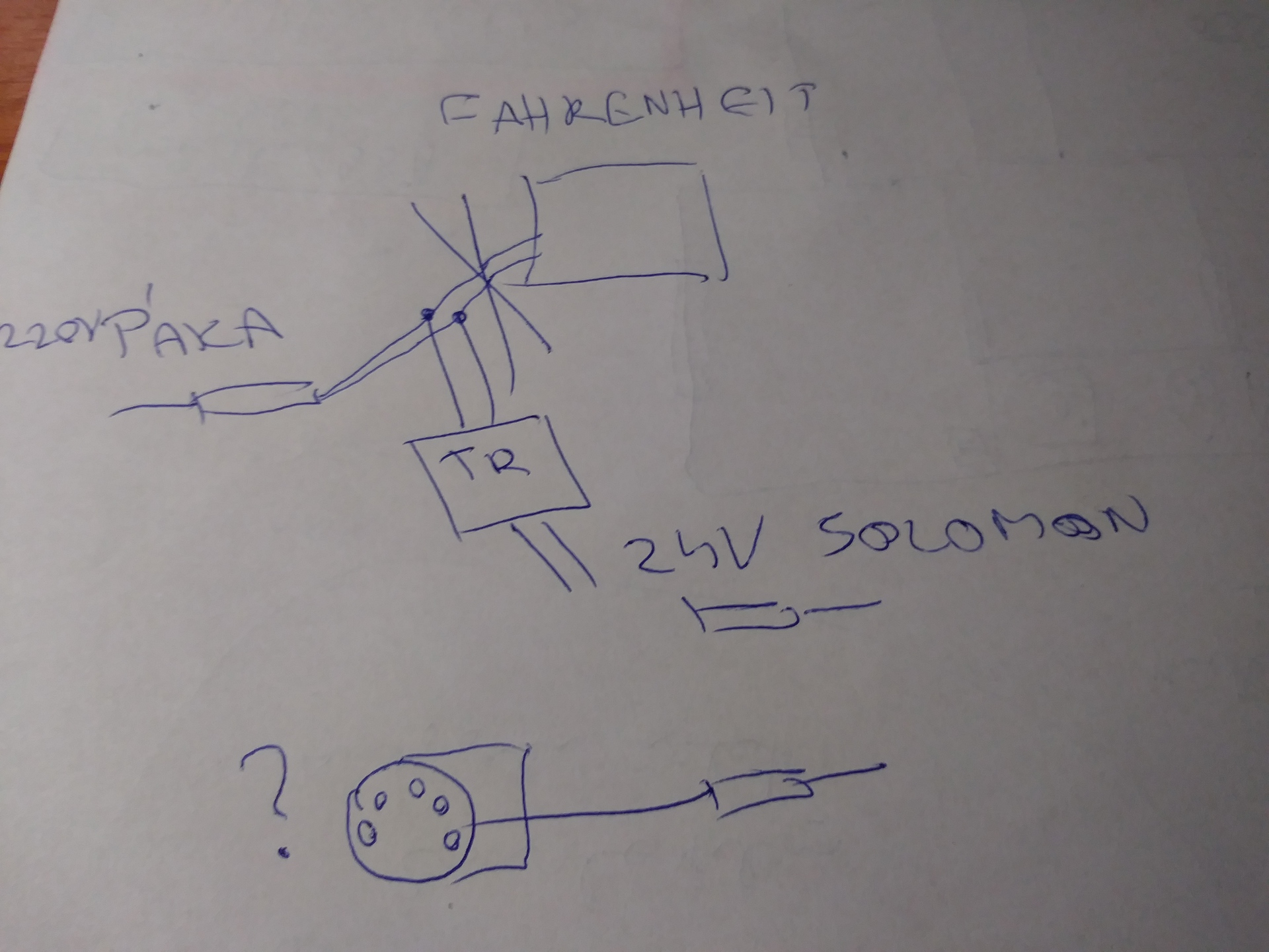 Levágod a Fahrenheit pákát (amit fogsz a kezedben) a kábeléről. Ezt a kábelt rákötöd a trafó 230V-os primer tekercsére, a 24V-os szekuderre meg a Solomont. Akkora teljesítményű trafót válassz, hogy a Solomont kellő árammal el tudja látni.
