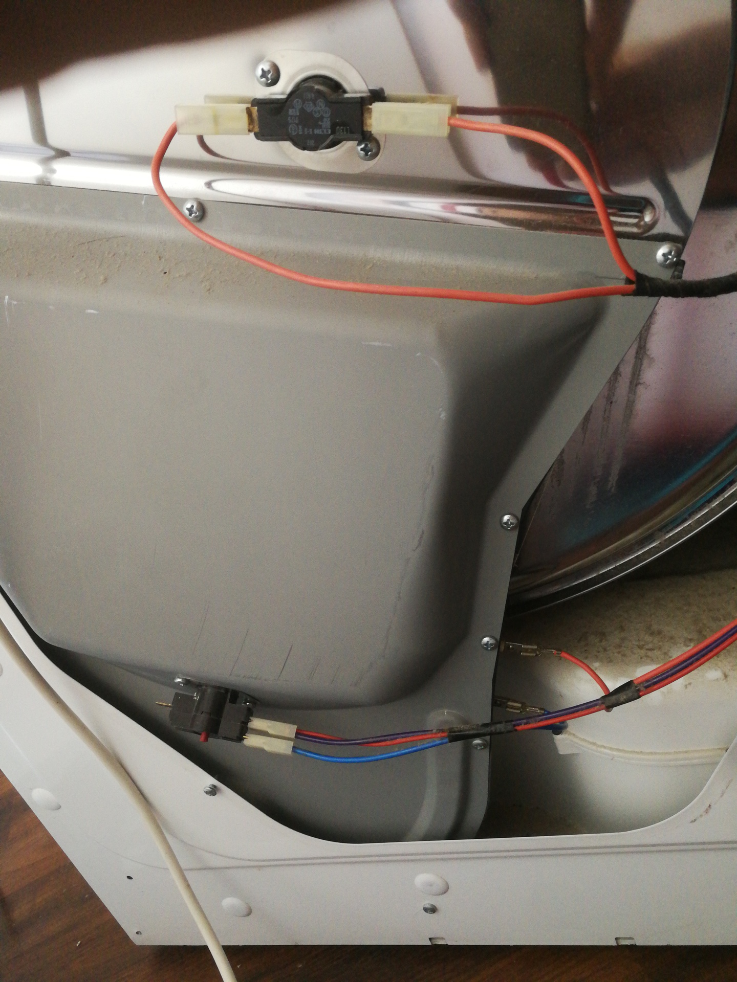 A dobban lévő két "törőlemez" vagy nemtudom minek nevezze, kiálló akármi elméletileg el van szigetelve a dob többi részétől, és egy fém szalaghoz csatlakozik a dob külsején, amin van egy csúszó érintkező, gondolom a dob és ez között mért ellenállásból tudja megmondani hogy száraz-e a ruha. Elkezdtem méregetni, ha üres a dob, 20MOhm méréstartománynál 0,04 körüli értéket mérek, ha dobok bele nedves ruhát, 2000MOmnál is végtelen az ellenállás. Az a gyanúm, hogy ez így nincs rendben, alaphelyzetben 0-nak kellene lennie gondolom, ruhával meg valami mérhető értéknek.