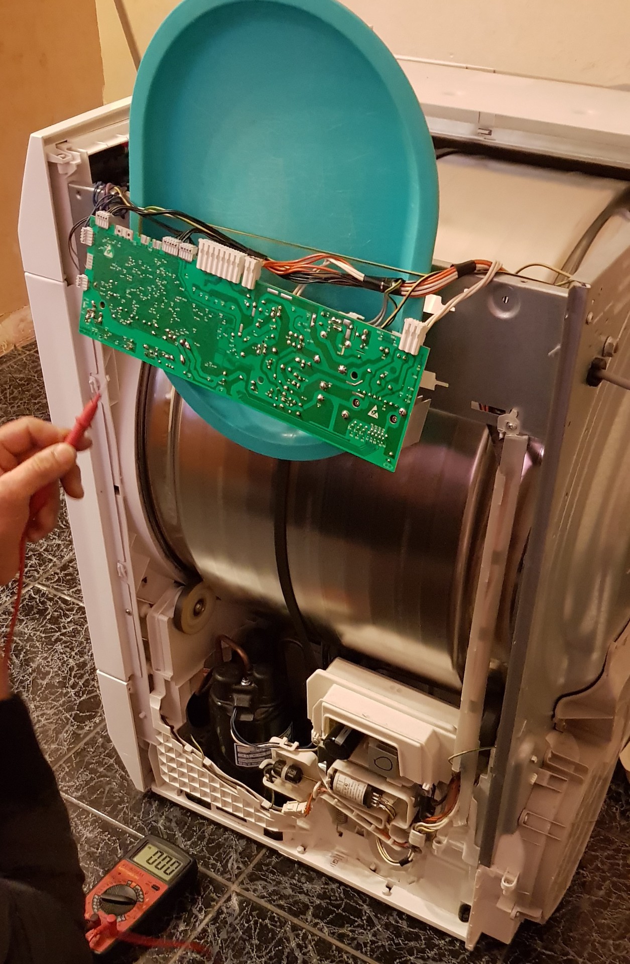 Aeg Lavatherm 5684EXL szárítógép nem ad semmi élletjelet. Van valakinek valami tippje hogy mi történhetett? Délelőtt még működött tökéletesen . Miután végzett egy programmal le lett kapcsolva, és utána már nem kapcsolt be. semmi visszajelző nem világít rajta. Várok inden információt. Ruszika