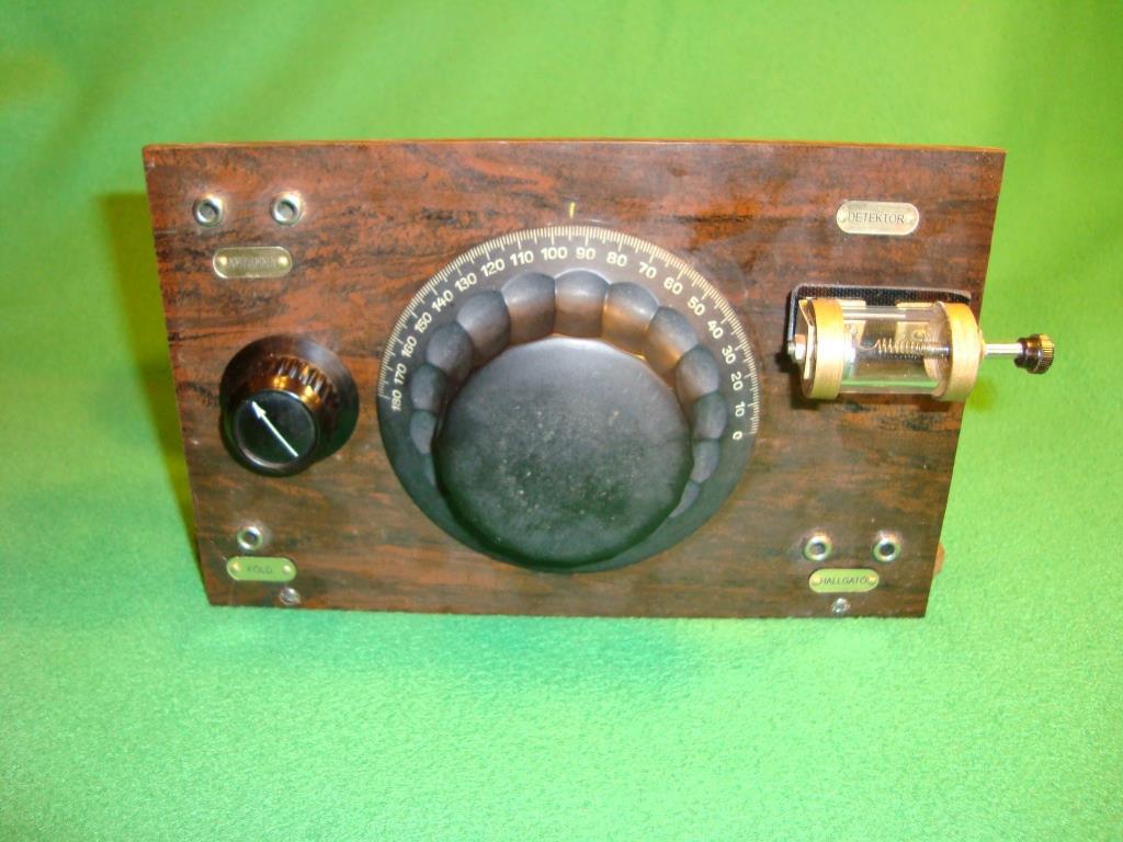 Ha már meg lettem szólítva: két hete vettem a Pécsi vásárba ezt a detektorost, az eladó persze azt sem tudta micsoda. Hiányzott a kristály detektor, amit le kellett gyártani, öreg villásdugóból, üvegcsőből, meg rézből. A doboza elég szép volt, maradt eredetibe. Csak a tekercset kellett megigazítani, a forgót javítani, meg pótolni néhány banánhüvelyt. Szépen szól , a többi a képeken.