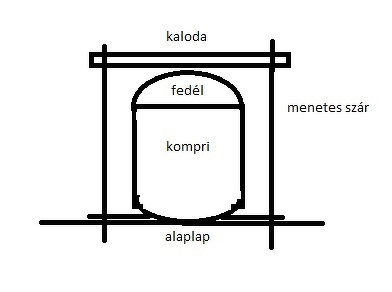 A fedél és a kompresszortest közé olajálló gumi, klingerit, parafa stb. tömítést kell tenni és a rajz szerinti menetes szárakkal a kalodát leszorítani.