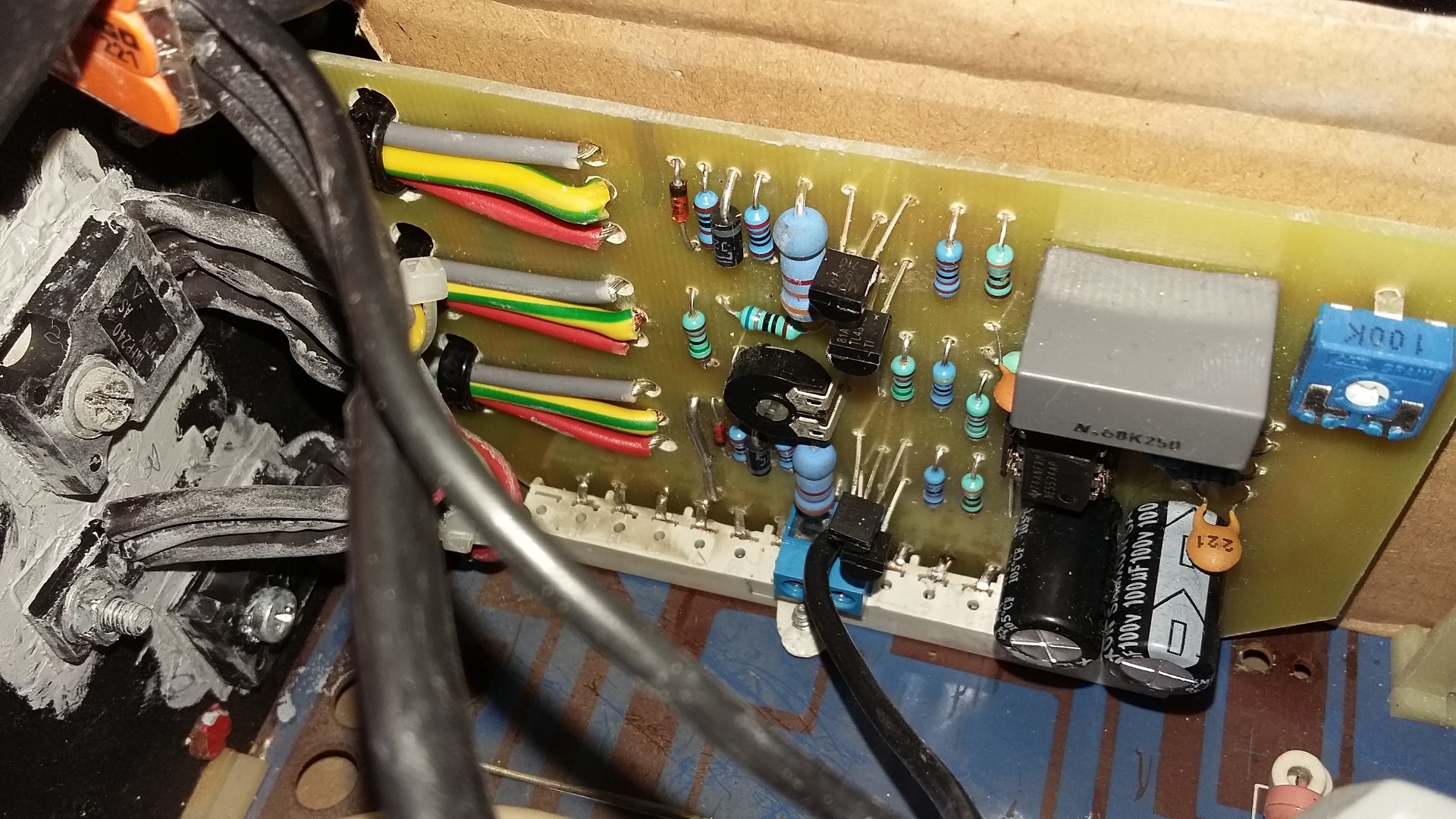 Az én esetemben (6380S) a tápegység modulokat és a 7815 ic-t el kellett szigetelni a műszerdoboztól. A negatív tápfesz oldalon pedik megfordítani a 470µF os elkót.