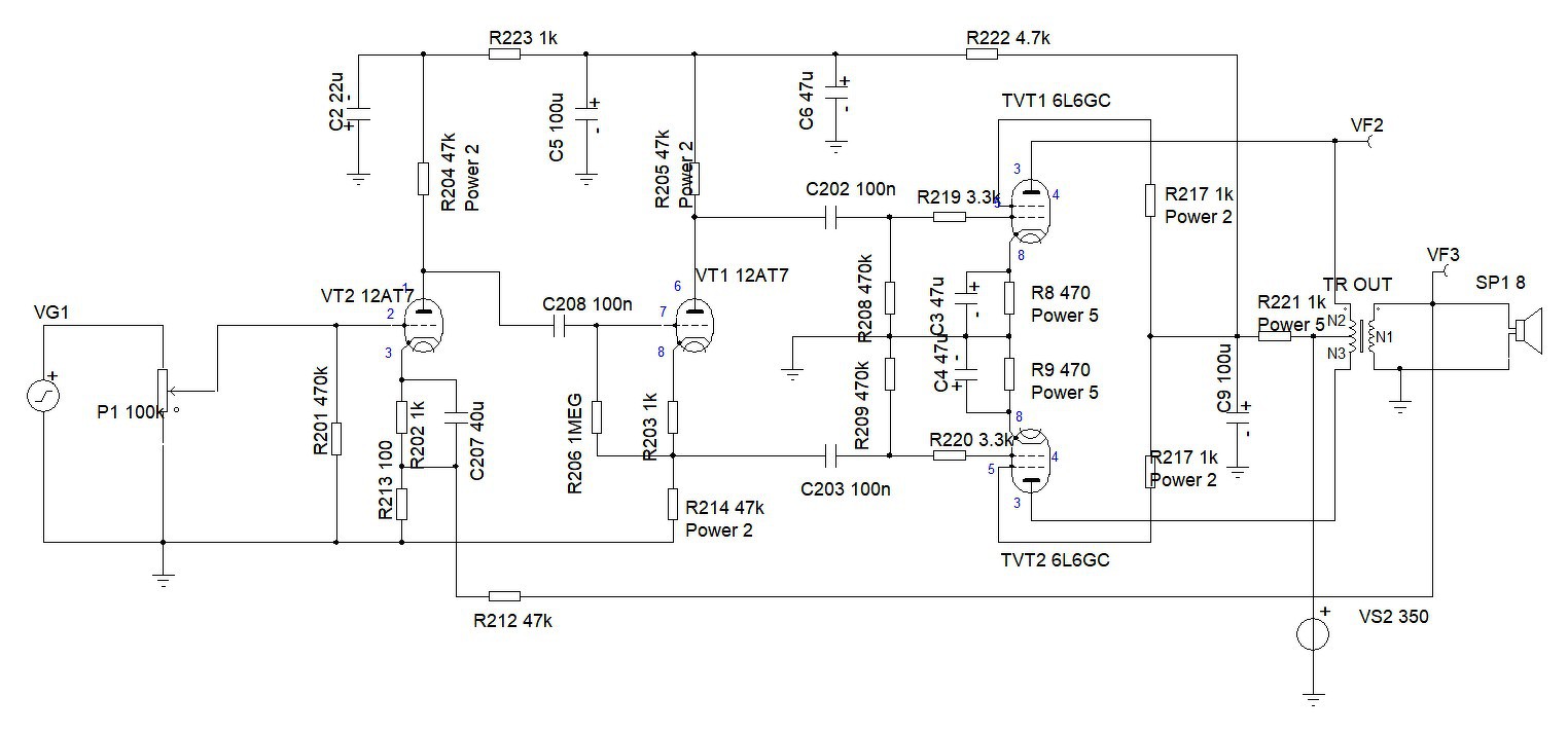 Szia! Az elsőt változatot (ECC81/6L6, 6N1P/6P3S) egy kapott kínai donorból tuningoltam, a másodikat megépítettem (ECC83/6L6, 6N2P/6P3S). Mindkettő jól működik és ha jól van összerakva, akkor szépen is szól. A második változat az SRPP első fokozattal és FET-es fázisfordítással alig bonyolultabb, de lényegesen szebben szól, mint az első. Én inkább ezt javasolnám. A táp nagyon egyszerű félvezetős. A másodikhoz terveztem all-in-one NYÁK-ot is. Az első verzióban a 6L6-ok rácsán a gerjedésgátló ellenállások nem feltétlenül kellenek, az NFB mindkettőnél elhagyható. Én mindenképp az SRPP-s verziót javasolnám, az egy többszörösen kipróbált kapcsolás.