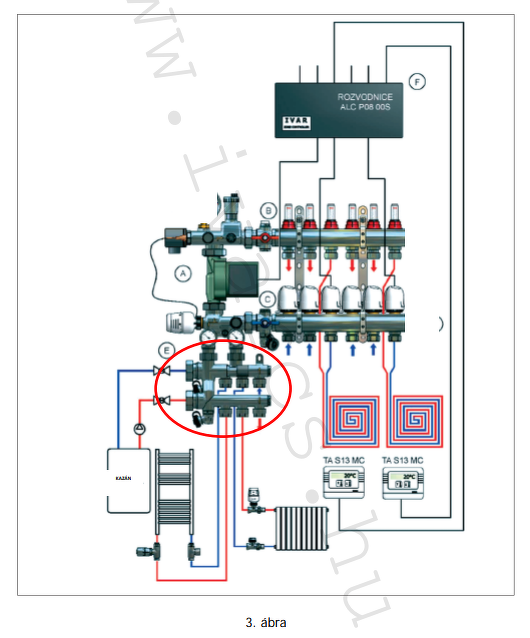 ..ahogy meg is találtad és linkelted a leírást hozzá.. Ugyanazt csinálja egy 100% hatékonyságú hőcserélő is, csak a padlófűtés két szeleppel teljesen leválasztható legyen ha a tél közepén meghibásodik / kilukad a padlóspirál (ezt szolgálja a hőcserélő is) a radiátorok tovább üzemelhessenek.