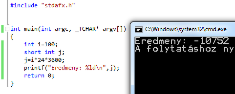 Idézet: „A 24*3600 is long.” A szorzatuk igen, de egyenként egyik szorzandó sem volt long, ezért az eredmény is int-ben képződik ( és az íródik be a long j-be!)! Ezért kell az egyiknek longnak lennie vagy kényszeríteni rá ( cast!) ! A hozzászólás módosítva: Dec 17, 2018