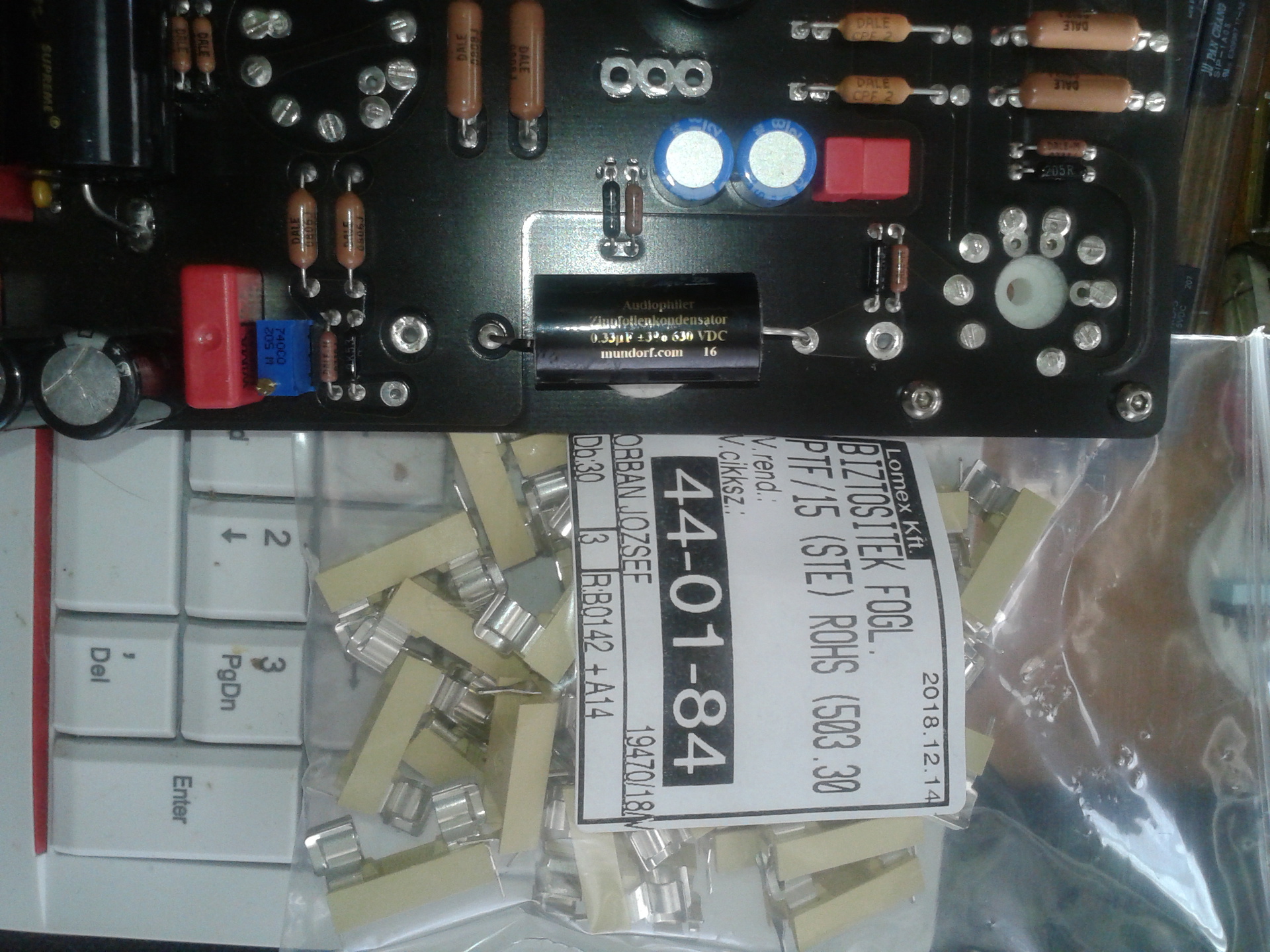 Itt egy fotó, párhuzamosított csatoló kondikról. A két 220nF-os.