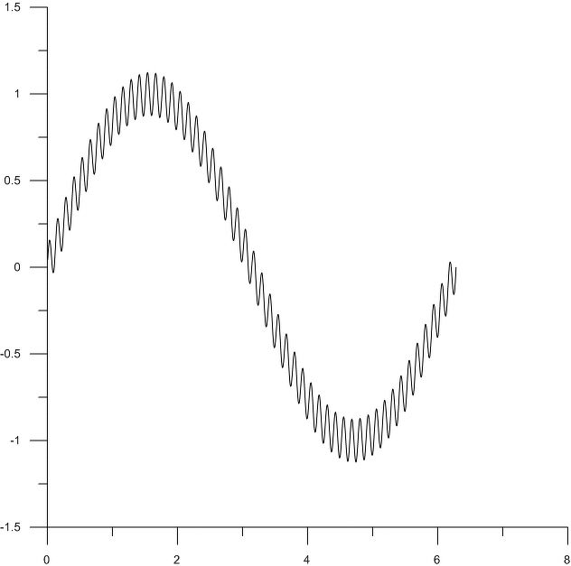 Hogy megértsem készítettem egy ábrát amit csatolok, ahol egy 0,5 Hz es jelre raktam egy 2 KHz es jelet. Persze kicsit torzítva, hogy látható legyen. Szóval így a két jel összegét már "pontosan" át fogja vinni az erősítő, azaz mindkét komponens benne lesz ahogy az ábrámban? Ezt így már lehet, hogy az okostelefon is ki tudja adni? Vagy rosszul értettem és nem így viszi át a két jel összegét?