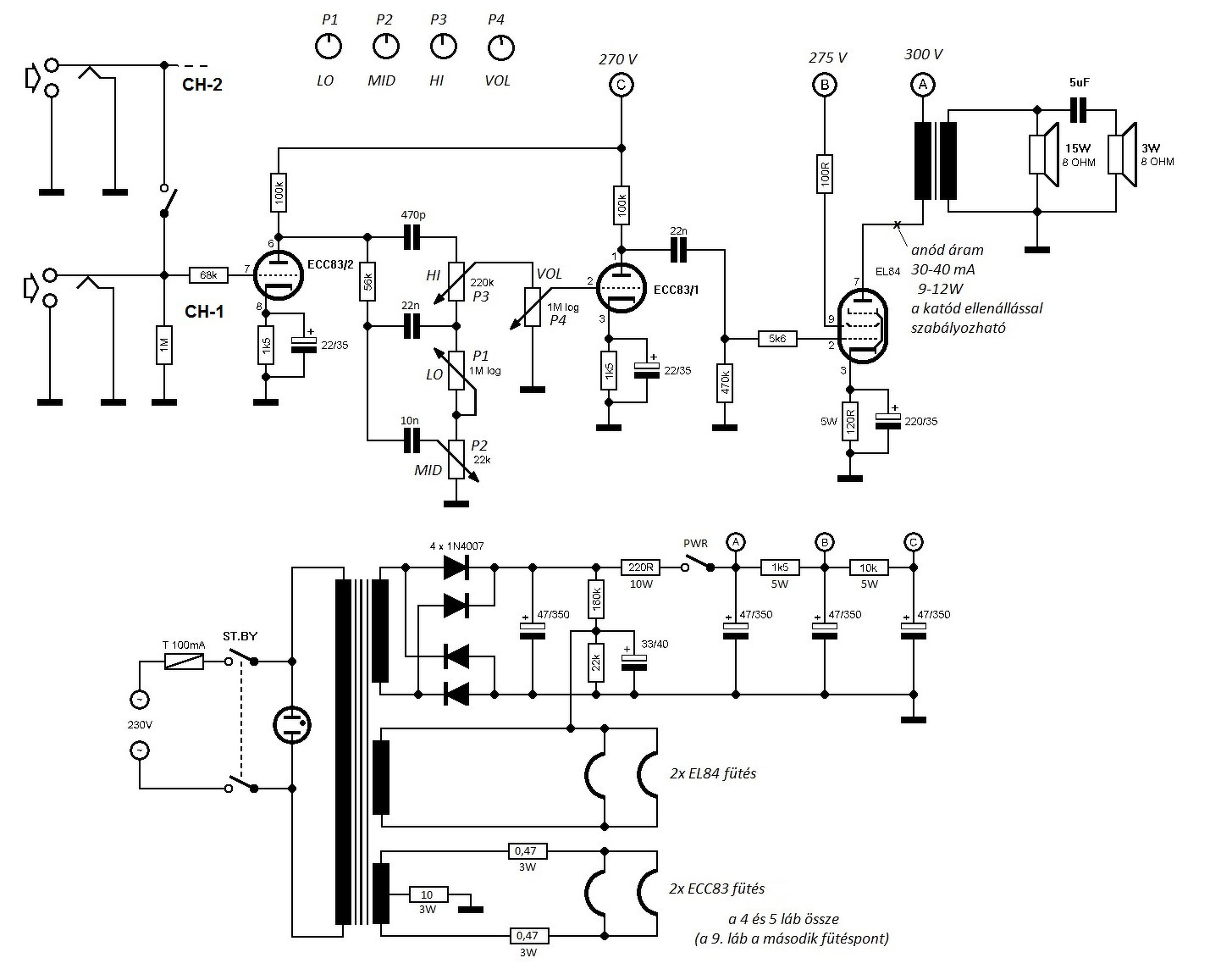 Üdvözlök mindenkit. Megépítettem az első csöves (gitár)erősítőmet a mellékelt rajz szerint. A csövek és a trafók egy régi Capri rádióból származnak. Az erősítőt egy mp3 lejátszóval teszteltem és nem kevés megelégedésemre indulásból működött.