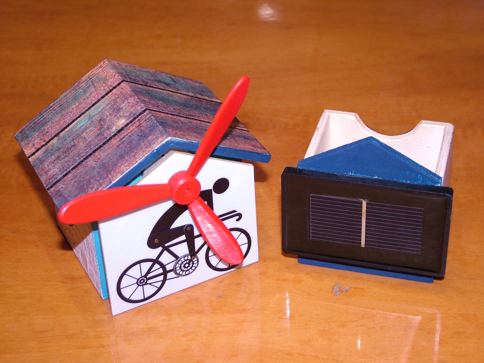 A házikót megvettem, és lefestettem. A megfelelő helyen a napfényre elindul. Tetszett nekik. Működés közben