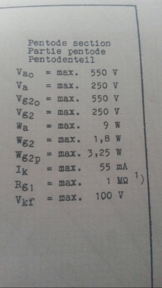 Idézet: „a Vao max az micsoda?” A Vao max az a csőre hidegen adható maximális anódfeszültség. Ennek az értéknek akkor van jelentősége, ha a cső még nem fűtött fel, ekkora anódfeszültségnél még biztosan nem üt át. Ha megnézed mondjuk az EF22 adatlapját, ott szépen ki is van írva: "Anode voltage in cold condition"