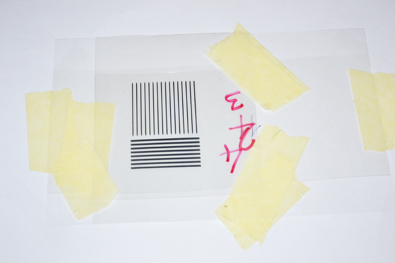 Nem hagyott nyugodni a dolog, feláldoztam a tudomány oltárán egy írásvetítő lapot. Nagy kár, hogy nem tudom élőben megmutatni. Attól függően hogy honnan jön a fény, úgy vetnek árnyékokat a csíkok, a fényképek a pontosságot nem adják vissza, eszközöm sincs normális fotót készíteni. Egy A4-es lapra ragasztottam fel a fóliákat, nem tudtam kifeszíteni őket. A kereszt irányú csíkok is jól fedik egymást ha leszorítom egy üveglappal de úgy már végképp nem tudtam lencse végre kapni, a masina nem találta el a fókuszt.