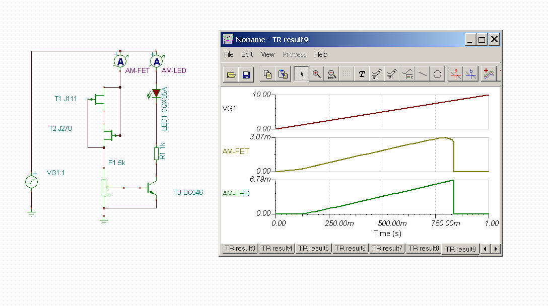 Elgondolkoztam azon, hogy lehetne-e olyan áramkört készíteni aminek nincs nyugalmi árama, amikor a feszültség nagyobb egy bizonyos értéknél, és csak akkor fogyaszt ha a küszöbérték alatti a feszültség. Arra jutottam, hogy 2db megfelelő jFet-el talán megvalósítható, de mindjárt előszedem a TINA-t..