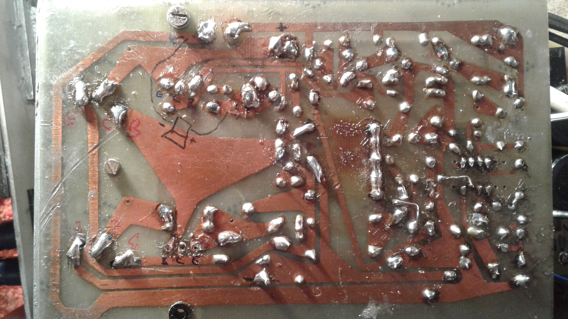Frankenstein újra életre kelt. Most kíváncsiságból BD242C meghajtókat tettem bele,és ezzel jobban tetszik a hangja,bár még nem hajtottam meg,mert a végek még nincsenek a hűtőn. R6 rajz szerint 330K,C5 68nF,ezt ugyanolyan értékű Wimára cseréltem,mint amilyen volt(talán Remix) Akkor az új évben veszek hozzá 47nF-ot. Igen, a nyák még a régi iskola szerint denszeszben feloldott gyantával lett lekenve,a foltok pedig a hővezető paszta,amivel összefogdostam. Nálunk a Kontakt WL-el mosnak át nyákot,az megfelel? (Most hogy újra szól a quadlövetű,a szilveszteri buliban zárlatosra lehet hajtani a hangdobozt,ami megint kinyírja a végeket...és 2019 szilveszterig megint van mit dolgozni rajta... ![]() Na jó,ez hülye vicc volt. Felszerelem a hűtőre a végeket és meghallgatom. Köszönöm a segítséget! Ha nem "találkoznánk",BUÉK Mindenkinek!