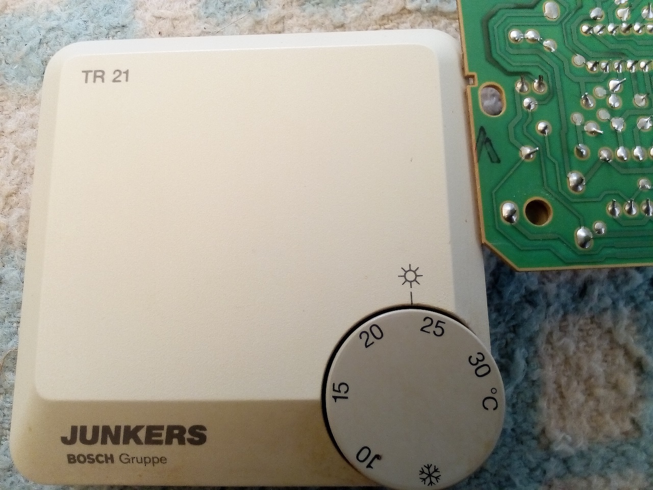 Szia , A Junkers-hez van analóg (tekerős) és digitális (programozható) termosztát is ami biztosan jó a készülékhez. Bosch TR 12, Bosch ZRZ 12-2 .