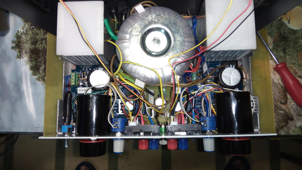Lassan elkészül a tápegységem . Még egy hátlap szükségeltetik , illetve úton van plusz 20.000 µF kondenzátor . Abszolút stabil és jól szabályozható . A képeken is látszik , hogy a műhelyben talált dolgokból készítettem , amit lehetett . Tudom , hogy nem mindenkinek kellene , de a saját igényeimet 200% - ban kiszolgálja .