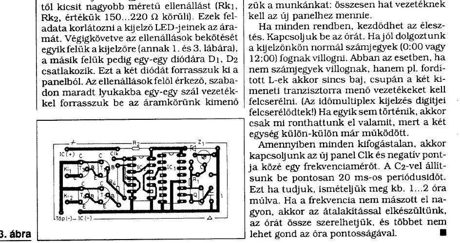 Le van csiszolva a két ic. Két helyen be lehetne nyúlni vagy a tranyók előtt, vagy a shiftregiszter oldalon. Van is ilyen 4 digites óraprogramom 16f886 pic és ds3231-el készen. Akár egy próbapanel darabra össze lehetne állítani. A hátlapra lehetne furni két lyukat azon keresztül két gombbal be lehetne állítani. Az eredetit meg hagyni békén.