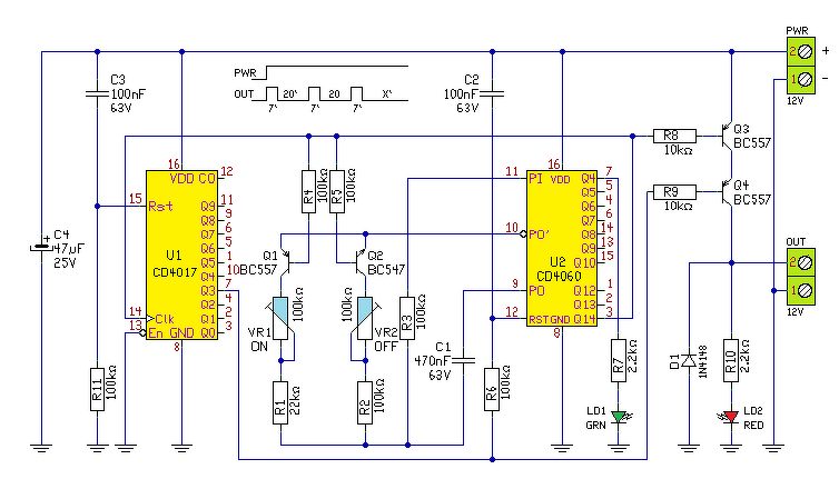 Az időket legfeljebb trimmerrel lehessen állítani mint feljebb proli007 rajzán. Kijelző fölösleges, legfeljebb egy led sor jelezheti hogy melyik ciklusnál tart.