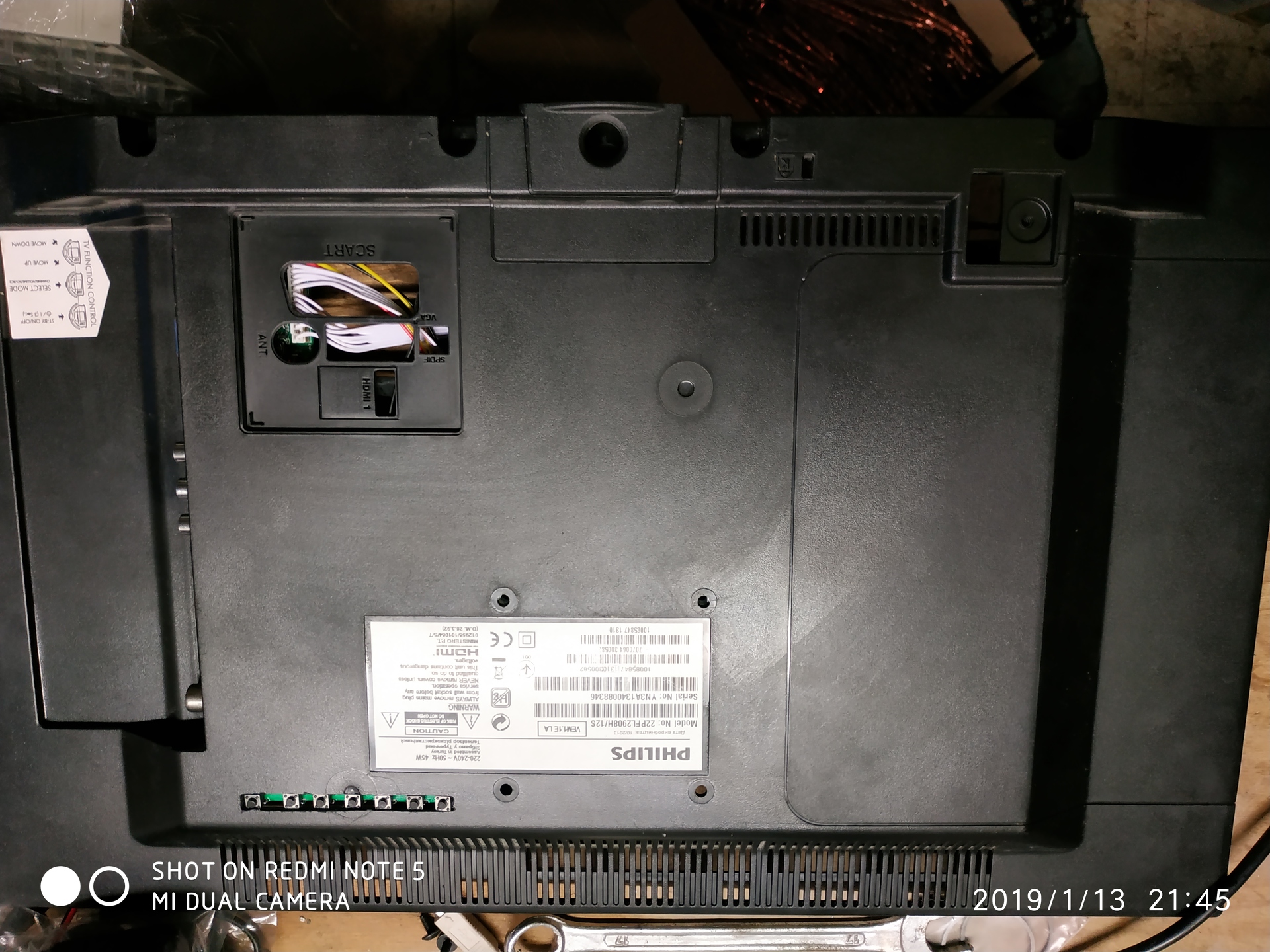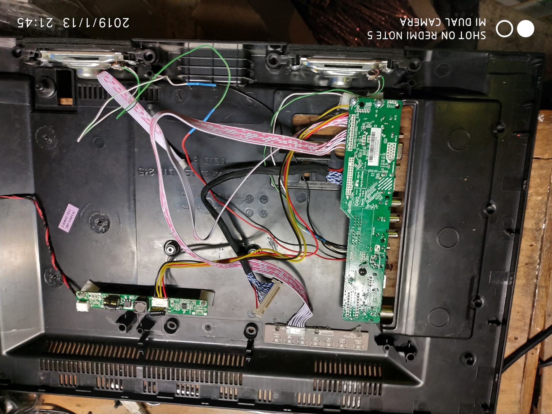 Pár hónapja kaptam egy 22" LCD tv-t hibásan. A panel javításával nem boldogultam de sajnáltam kidobni. Raktam bele kínai vezérlést. A nyomó gombokat ki kellett szedni és át forrasztani a panel másik felére majd reszeltem neki megfelelő helyet. A többi már gyerekjáték volt. Most gondolkozom a belső táp megépítésén. Ha nagyon macera akkor külső tápos marad. Az elejére befaragtam még az infra vevő ledet a standby LED mellé. Az elöbbi nem lett valami szép sajnos. Üdv!