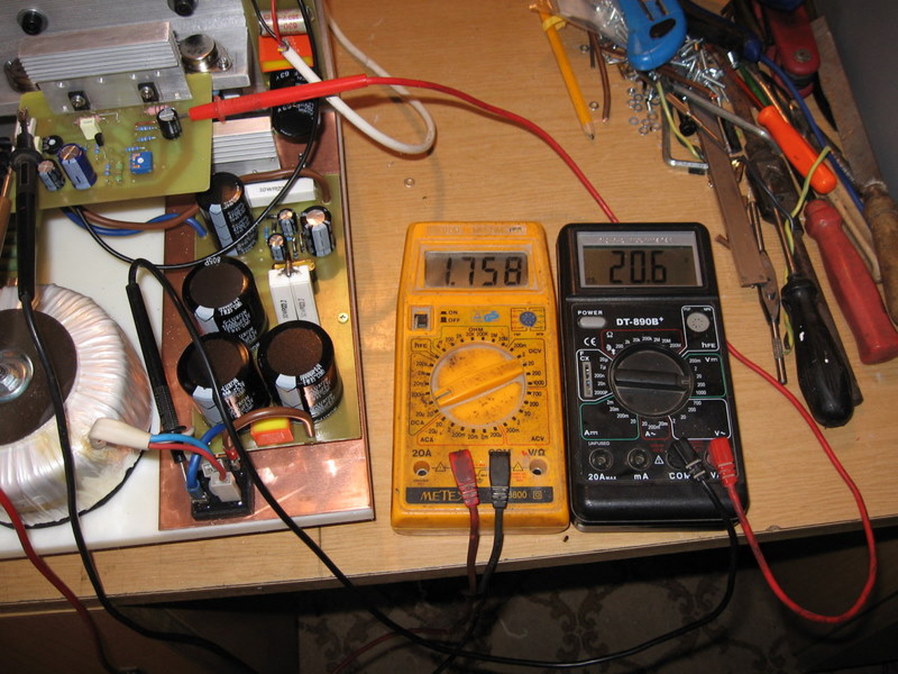 Már nem tudok mérni sem. Az egyik 100ohmosom izzik ha ráadom a feszt, meg a p1 is ha le van tekerve. Du. veszek cuccokat hozzá.