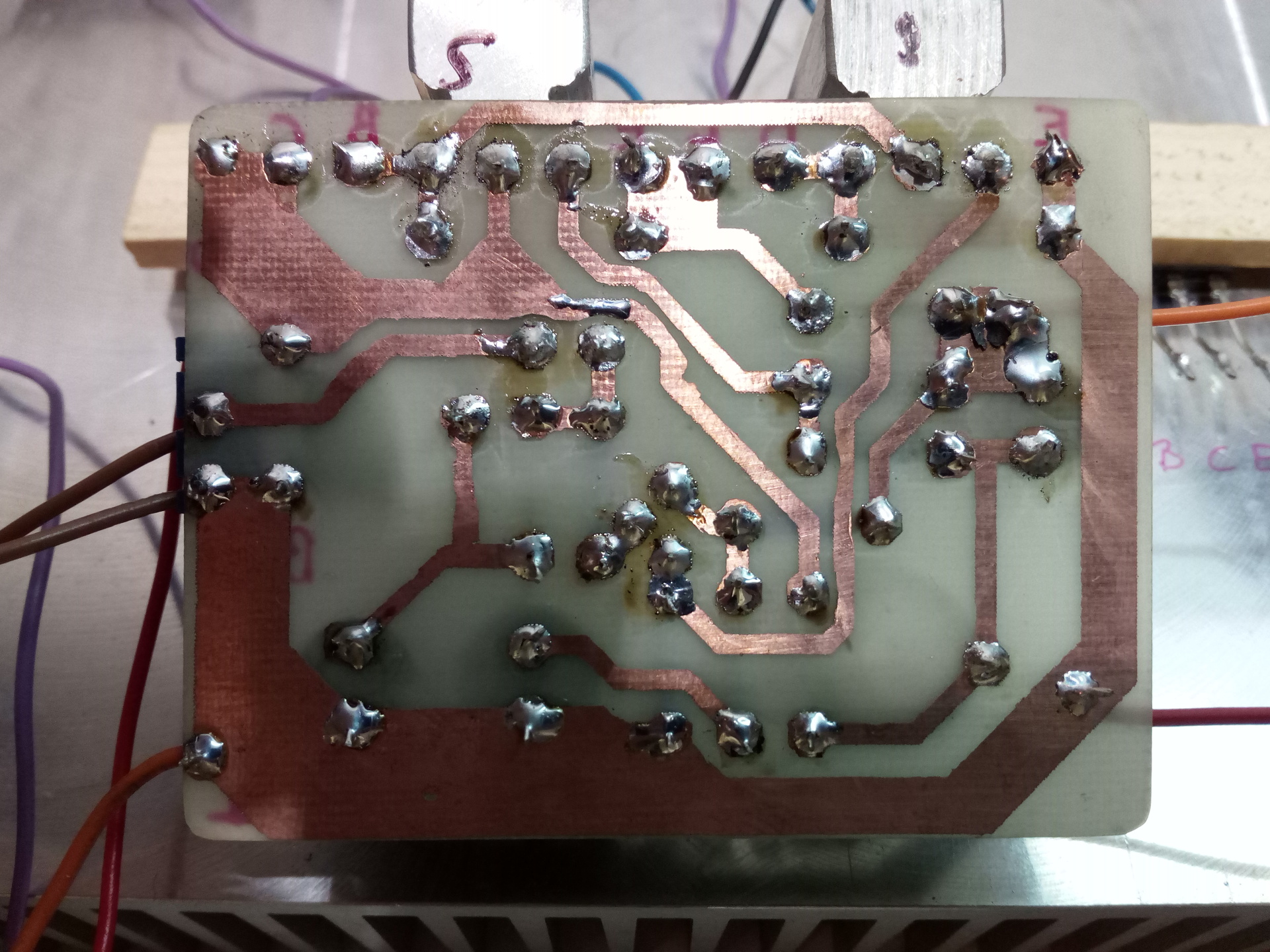 Leellenőriztem a tranzisztorokat, most újak vannak benne. A forrasztások már nem a legszebbek, mert 100x kiszedtem már mindent, leellenőriztem, meg visszaraktam.