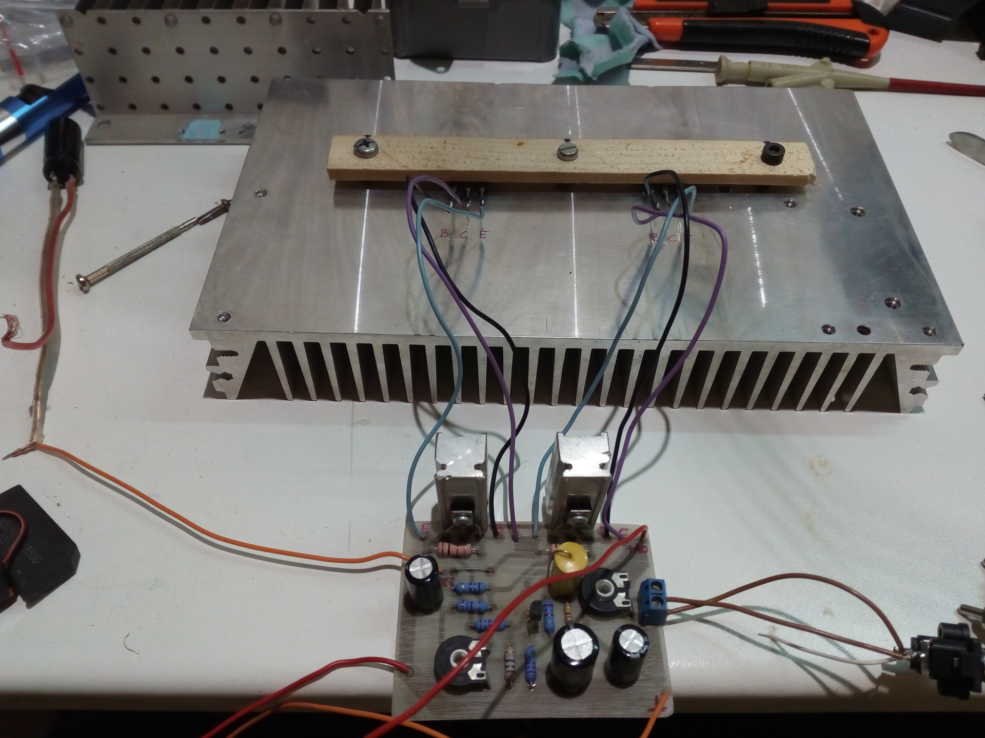 Köszönöm a segítséget, infókat. Vettem mindent, este méregetek. Annyit még nem ment sajnos, hogy a bd139 melegedhessen. Egyelőre nem a tartósság a lényeg, hanem hogy egyáltalán életre keljen. Természetesen a fenyőlécet sem végleges megoldásnak szántam és a drótokat sem.