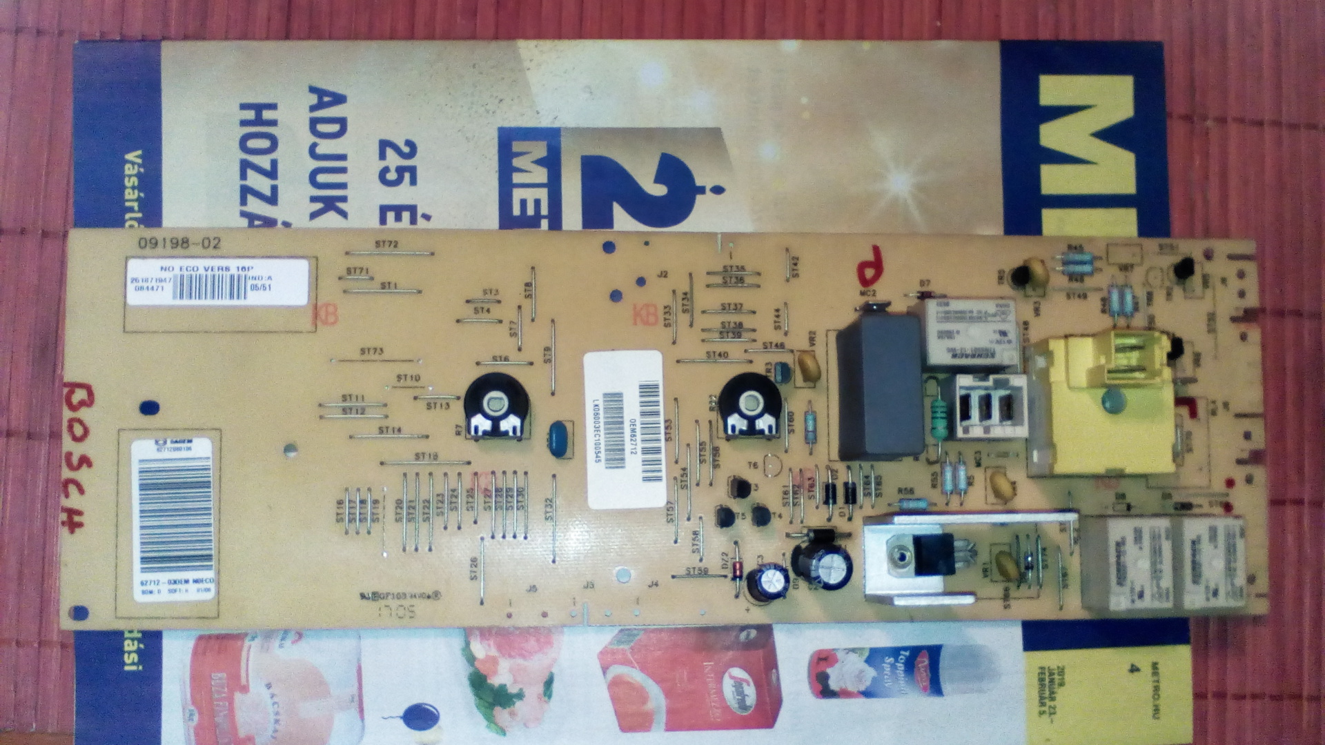 Látszólag semmi hiba, mármint se égés, se elpukkanás. Van rajta egy táp IC (DIP tokos), ami 230V-ból csinál 12V-ot. Ezen volt egy nagyon kis pötty szerű képződmény, ezért cseréltem (típus: LNK305PN)