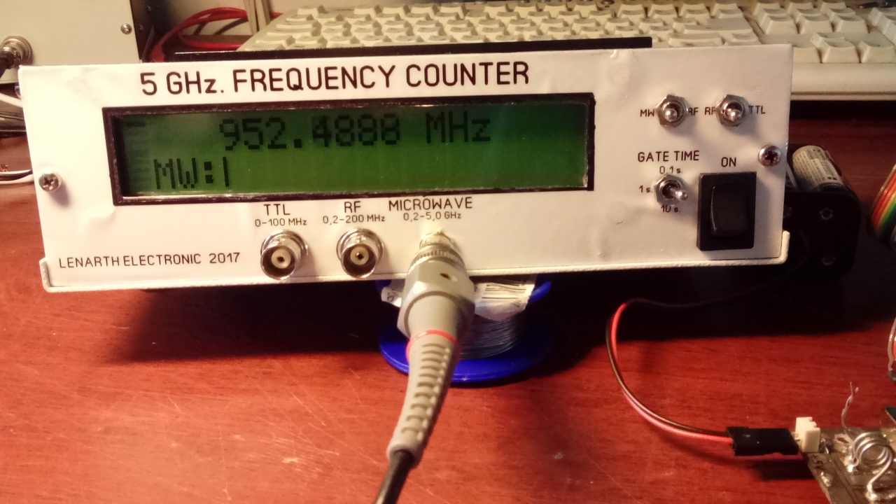 Én is megépítettem, az enyémben 0.1 PPM-es, 20 megahertzes TCXO adja a referencia frekvenciát, hátuljára leosztva , és kivezetve a 10, és 5 MHz. a további etalonokként más eszközökhöz. Viszont, az érzékenysége nem a legnagyobb, nagyjából 25 mV kell neki... Ettől azért van nekem sokkal érzékenyebb frekimérőm is..