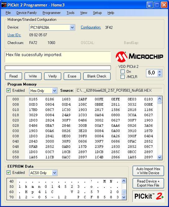 Továbbra sem értem egészen. Az általad feltöltött 2.57 -ben (ugyan ez van meg nálam is) ugyan annyi parancskód definiálható, mint a 2.61 -ben. Az adat EEProm területén csak a verziószám (0x6B-0x6C) és a dátum tér el .