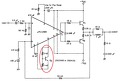 Esetedben a 7-8 lábak közé épített áramköri részlet az érdekes. A találgatást megelőzendő rajzold vissza és/vagy fényképezd le! A mellékelt rajzon az adatlapi ajánlott kapcsolás látható, a kérdéses részt bekarikáztam.