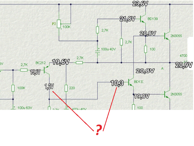 Ha a korábbi módon megadod a tranzisztorlábak feszültségét, akkor azért láthatóvá válik hol is van a probléma. Nekem ez egyszerűbbnek tűnik az alkatrészek cserélgetésénél.