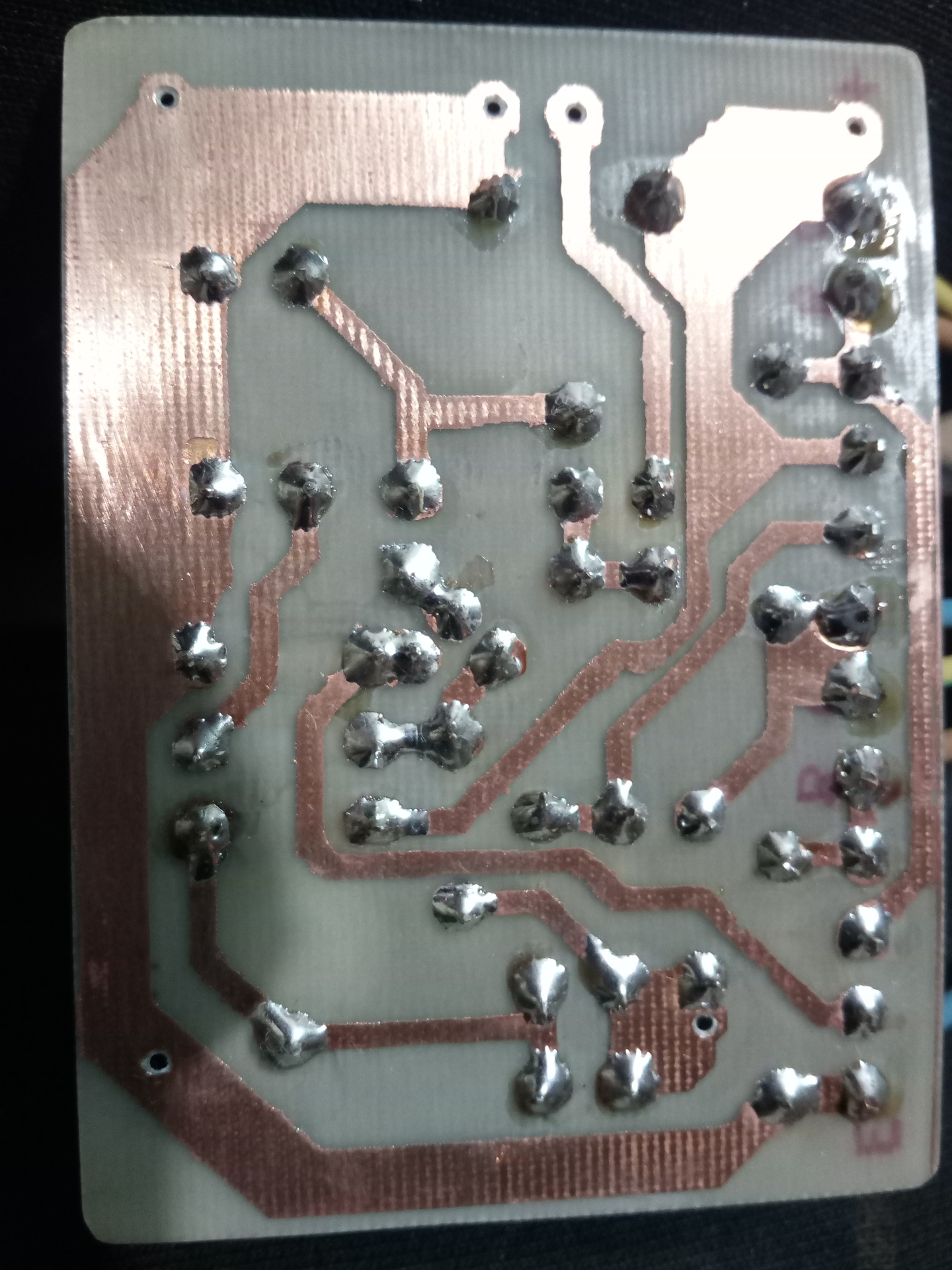 Üdv. mindenkinek. Leellenőriztem diódaavizsgálóval a végtranzisztorokat, aszerint jók, és ugyanazokat az értékeket mutatja, mint a másik oldali végfokban. Bd139-eket újra cseréltem, de így is ugyanaz a tünet. Kiszedtem az alkatrészeket, egyesével ellenőriztem, mind jónak mutatkozik. Arra jutottam, hogy új nyákot csinálok neki, mert ez volt az első, és hát nem a legjobbra sikerült. Azért csatolok pár képet, hátha valakinek valami szembetűnik a bekötésekkel kapcsolatban. Az utolsó képen van a legvégső állapot. Köszönöm a türelmet.