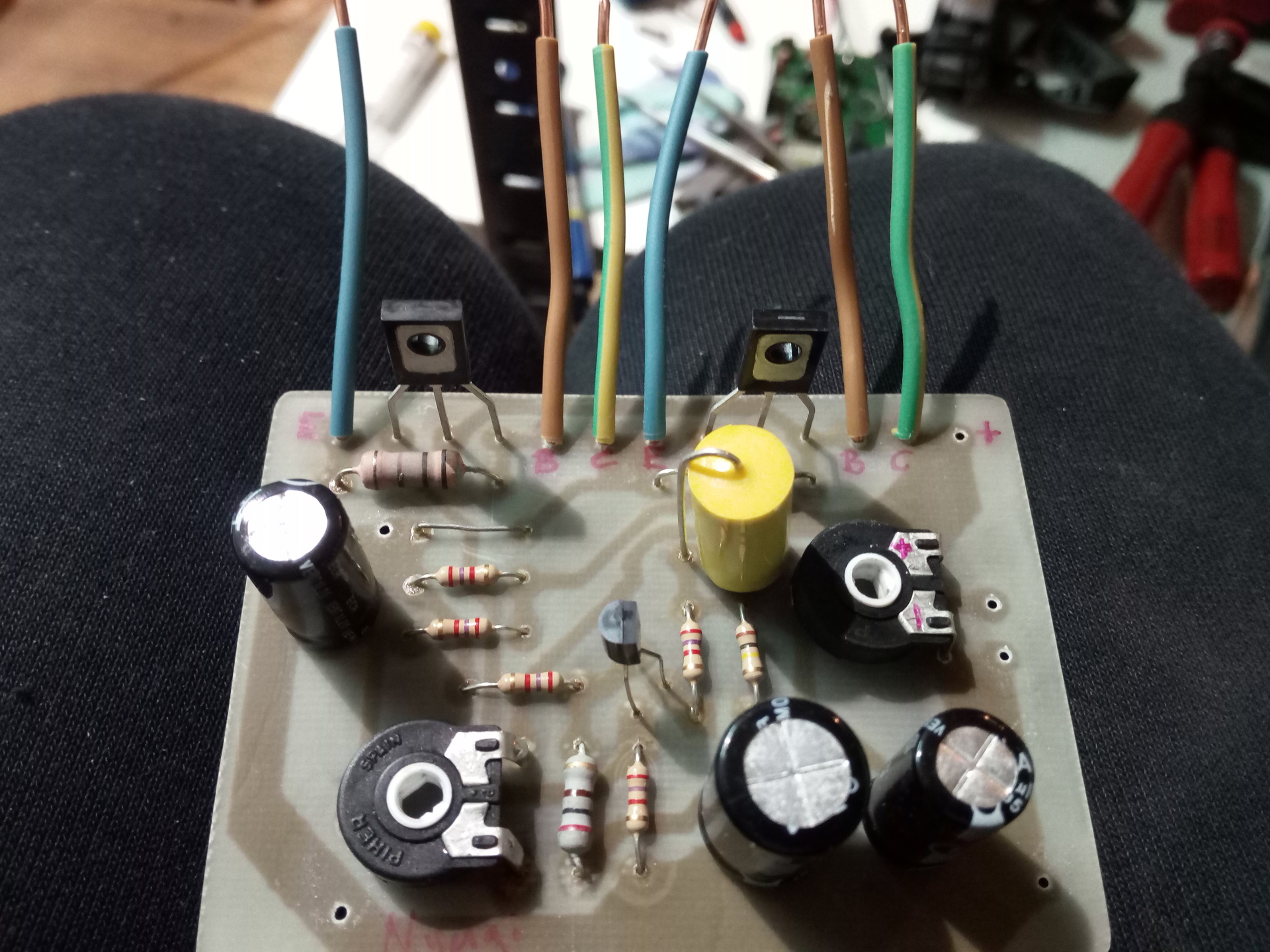 Holnap ellenőrzöm a végtranzisztorokat, ezek szerint esélyes az is, hogy halott!? Ha ilyen gerjedés van, nem véd a 2amperes bizti sem? Mi okozhat ilyen gerjedést? Csak annyit csináltam, hogy nyákra tettem a kicsatoló kondit, meg a 10mikróst és úgy kötöttem a végfokra.