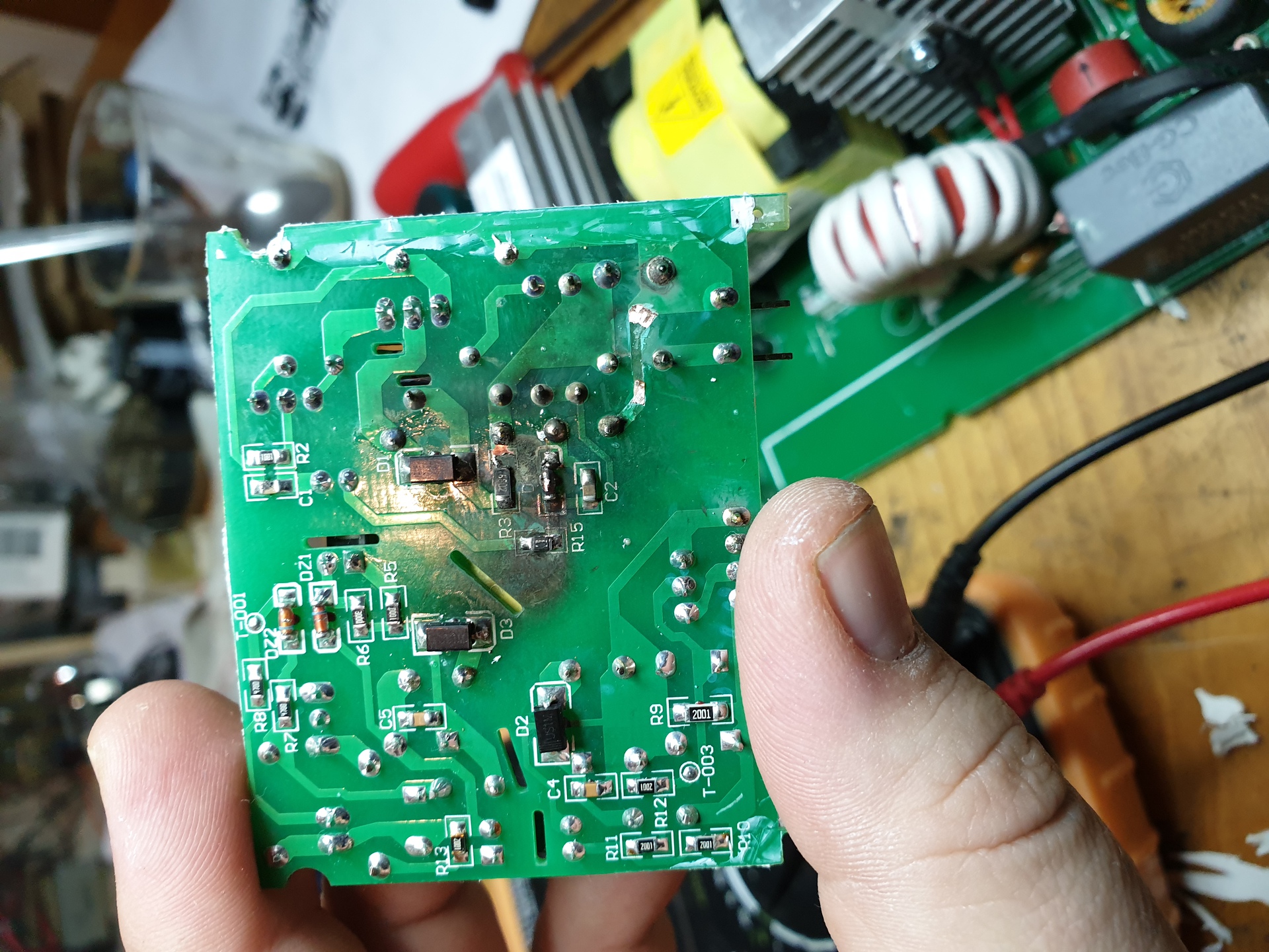 Sziasztok. Ismét hozám került egy lexon. 1500XL ennek a psu pcb jé kicsit meg sült... Esetleg valakinek nincs rajza róla. Mert 2db ellenállás és 1 dióda el olvadt. Annyira hogy felismerhetetlen. Dobok pár fotót. A gyártó is meg van de nem rendelhető :/ előre is köszönöm.
