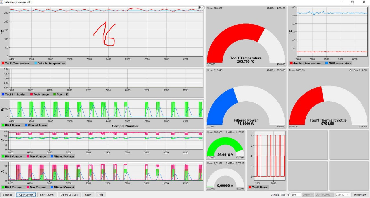 Igen, épp ezért támogatja az állomás a T210-es pákát is. Apró SMD alkatrészek beforrasztásához vagy mikroszkóp alatt dolgozni az sokkal praktikusabb. Természetesen azokra a hegyekre nem lehet ráküldeni a 160W-ot, így ott fázishasítással csökkentettem a kimenő teljesítményt nagyjából 40-50W-ra (ez nem ugyanaz, mint a videóban említett teljesítmény korlát). A T245-el pedig beforrasztható minden egyéb. Létezik egyébként egy "kistestvére" ennek az állomásnak (ugyanekkora, de csak egy páka csatlakoztatható), amit egy barátomnak építettem (ezért kellett a firmware frissítés opció is). Ő 16mm2-es vezetékekre forrasztott sarut 260C-on. Mondta, hogy sose forrasztott még ilyesmit ilyen gyorsan és könnyen ráadásul anélkül, hogy menet közben ki ne égett volna a gyanta.