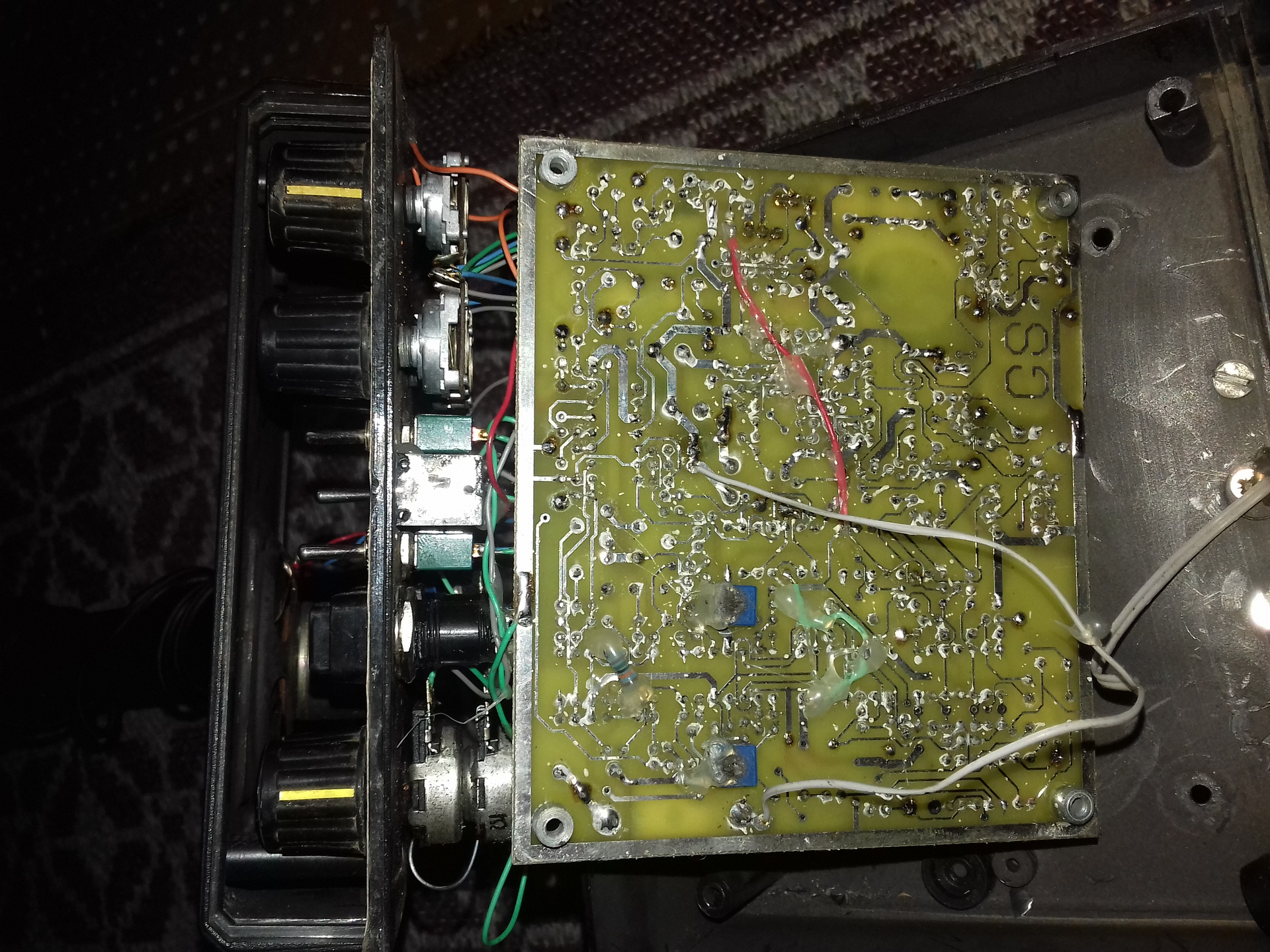 LM339-TL064-HC4520BE-CD4066-CD4053-NE5534-TL062 van benne! A potéterek régi békebelinek tűnnek és hát kicsit oxidáltak is, a Gebnek stereo potencióméterje van. Nagyon hasonlít a Fisher 1266 ra, úgy a frekvencia mint a nagy koncentrikus tekercs és a filterekhez használt rengeteg IC ugyanis sok a TL064. Legyen időm vele foglalkozni akkor többet tudok majd megosztani. Nem akarok rossz lenni de szerintem másolat, de majd csak lesz valaki aki jobban tudja! Az érzékelése levegőben igen jó de az érzékenységet 4-nél erősebben nem tudtam talajon haszálni. Hasonló az IDX hez amit építettem, kicsit meszebb visz mint a TGSL de ezeket birom szinte teljes érszékenységgel használni talajon míg a GS4 nem, így csak dísznek meg tanúlmánynak van egyenlőre. A gombok rosszúl vannak elrendezve, fémszűrés nyomógombos és az érzékenységenk nincs skálája.