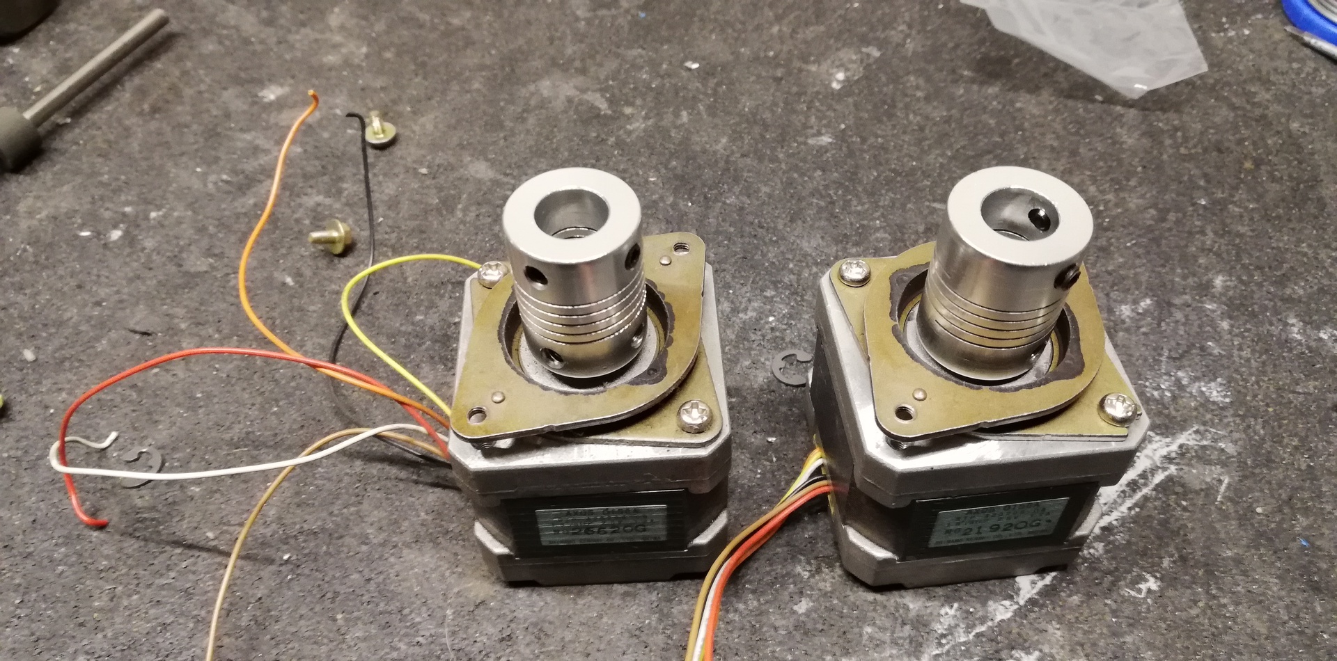 Megjöttek a z tengely kuplungjai, a léptetőn eredetileg szíjtárcsa volt, satu + 2db nagy csavarhúzó páros, mint alkalmi lehúzó (jobb ötletem nem volt). De az elején vagyok még ....