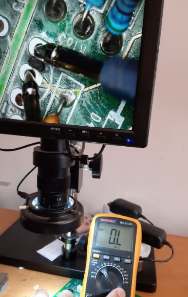 A jó oldalon az ellenálláson 480K ohm-ot mérek, ezen pedig 380 ohm, mint ahogy a képen látjátok.