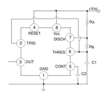 T = t1 + t2 = 0.693 (R1 + 2R2) C1