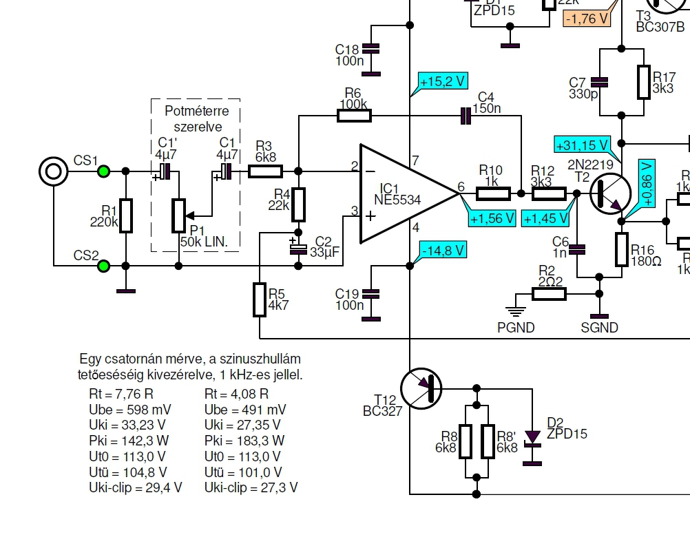 A rajzon nem az eredeti, hanem a B-Ludwigos módosítás van, aminek kb. 2 V a bemeneti érzékenysége.