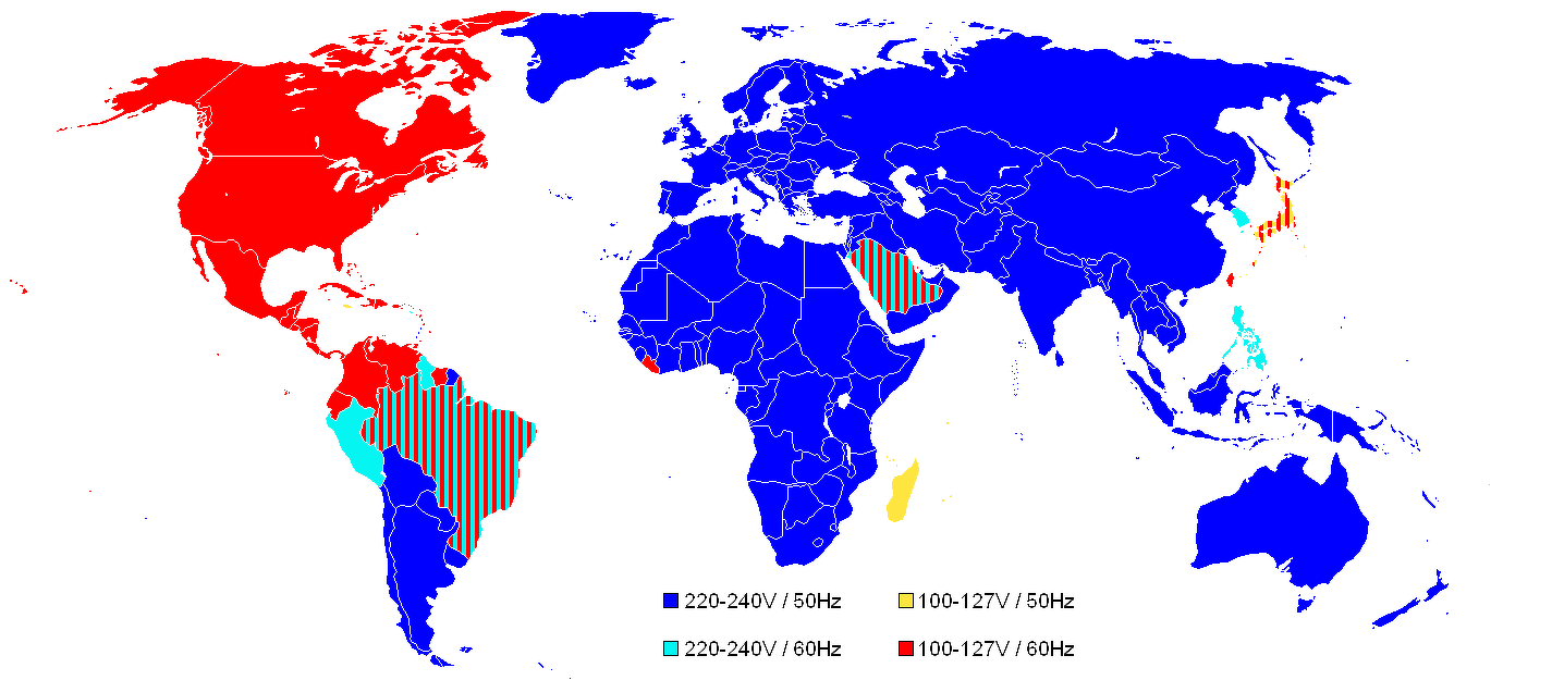 Személyesen nem győződtem meg róla, (voltak amerikai kollégák azoktól) de úgy tudom, Amerikában 3 fázis csak ipari üzemekben van. A lakossági ellátás egyfázisú, 2 ×120 V ez úgy jön ki, hogy van egy hengeres doboz az oszlopon, abban egy trafó 240 V középleágazással. Normál esetben 120 V van, de a nagyobb fogyasztók, klíma, mosó/szárítógép stb van 240 V. A 120 V az érintésvédelem egyszerűsége miatt használatos.