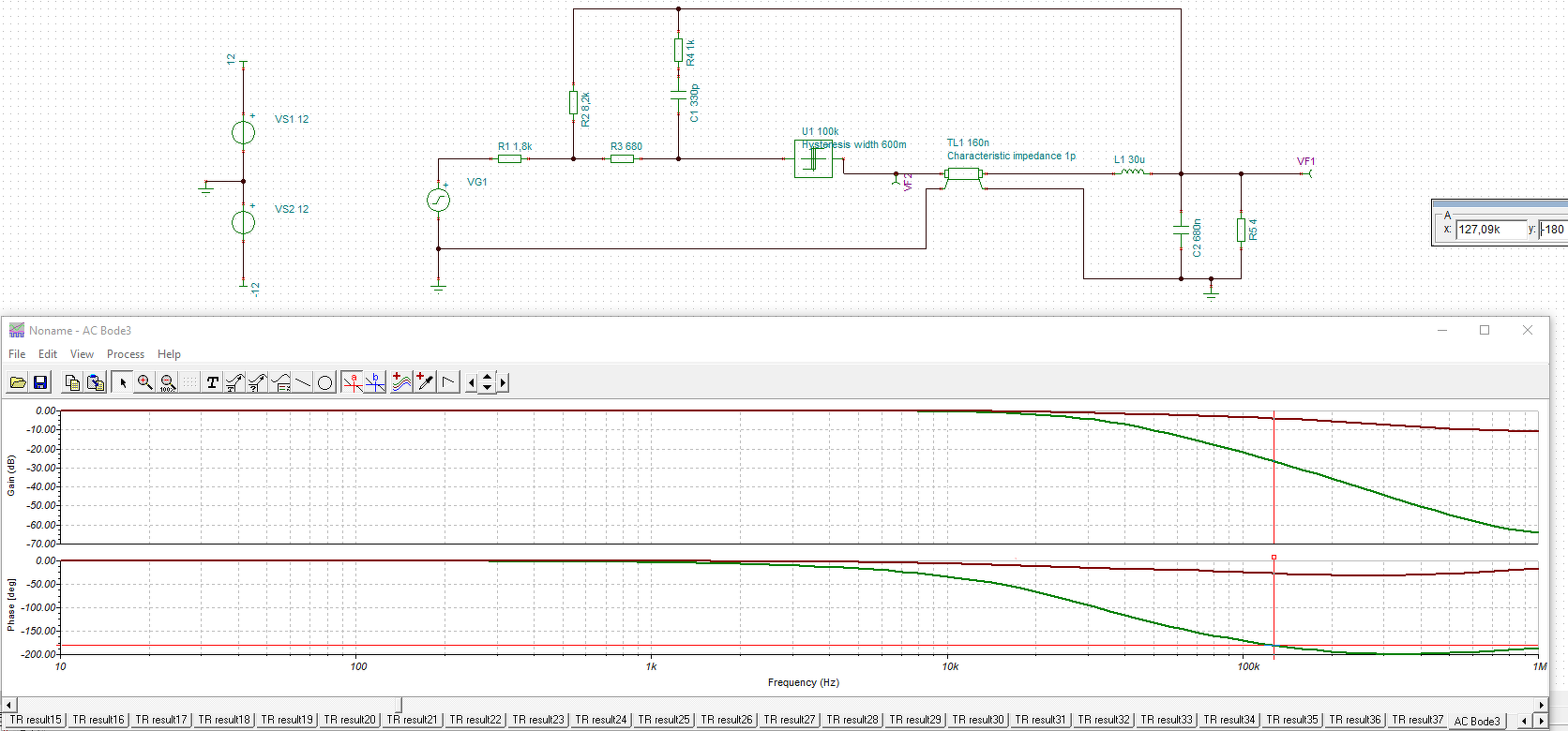 Kelleni fog a kitartás...Próbáltam az ideal time delay komponenst is, de ott is különféle anomáliákkal találkoztam, főként a Bode-diagramm ment szét, a várt 13.1dB DC gain helyett lett 300dB és hasonlók... De lehet, hogy mégis megpróbálkozok azzal :/.