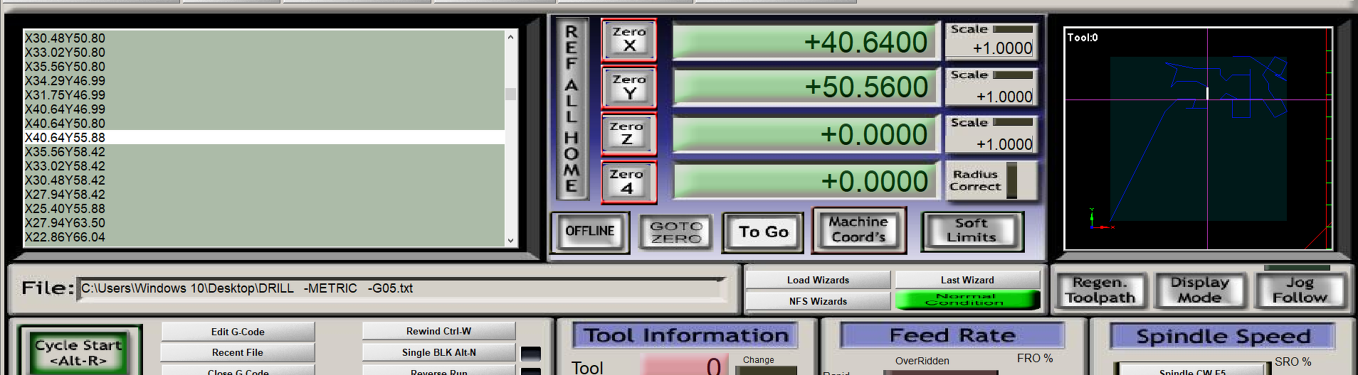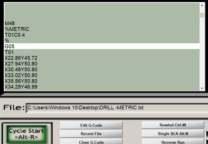 Srint Layout 6.0 áramkőrtervező fúrófajl exportját igyekszem összehozni a mellékelt "BEÁLLÍTÁSOK"-kal, de nem megy, sőt más egyéb beállítással sem. MACH3-al szeretném kifúrni, de már -érthetően - a "METRIC" kifejezést sem ismeri, elakad az előzetes programellenőrzésnél. Mivel erre a MACH3 metrikus beállításai miatt nagy szükség nincs, így ki%-olva persze átugorja. Továbbmenvén a G05-ben akad el. Ha a G05-öt is átugratom vele, akkor a program gyönyörűen végigfut, csak persze nem fúr egyetlen furatot sem, de mitől is fúrna, mikor a "Z" tengely nem kap parancsot? A G05-ről nem sok irodalmat leltem (inkább semmit), ebben van a csel? Ha beállítok mondjuk F500 mm/perc előtolást, M3-al elindíttatom a maró (fúró) motort, az egyes pontkoordináták (sorok) közé beszúrom a Z0, majd következő soba Z5 parancsot, majd a végén M5-el kikapcsolom a fúrót akkor persze kifúrja, de ezeket beírogatni kétszerannyi idő, mint kézzel kifúrni a panelt... Hol rontom el, mi a megoldás? Köszönettel derűs napot kíván; Tambi. A hozzászólás módosítva: Ápr 8, 2019