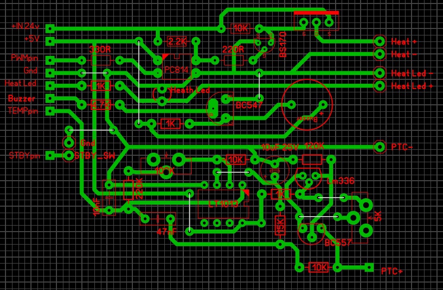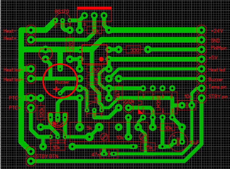 Hello! Nem igazán tudom követni ezt az "össze-visszaságot", de az eredeti terven a BS jól volt berakva. A 24V megtáplálását kellett volna átvinni a jobboldalra, hogy a fűtés árama ne kóvályogjon a GND vonalon, ahol még átkötések is vannak.